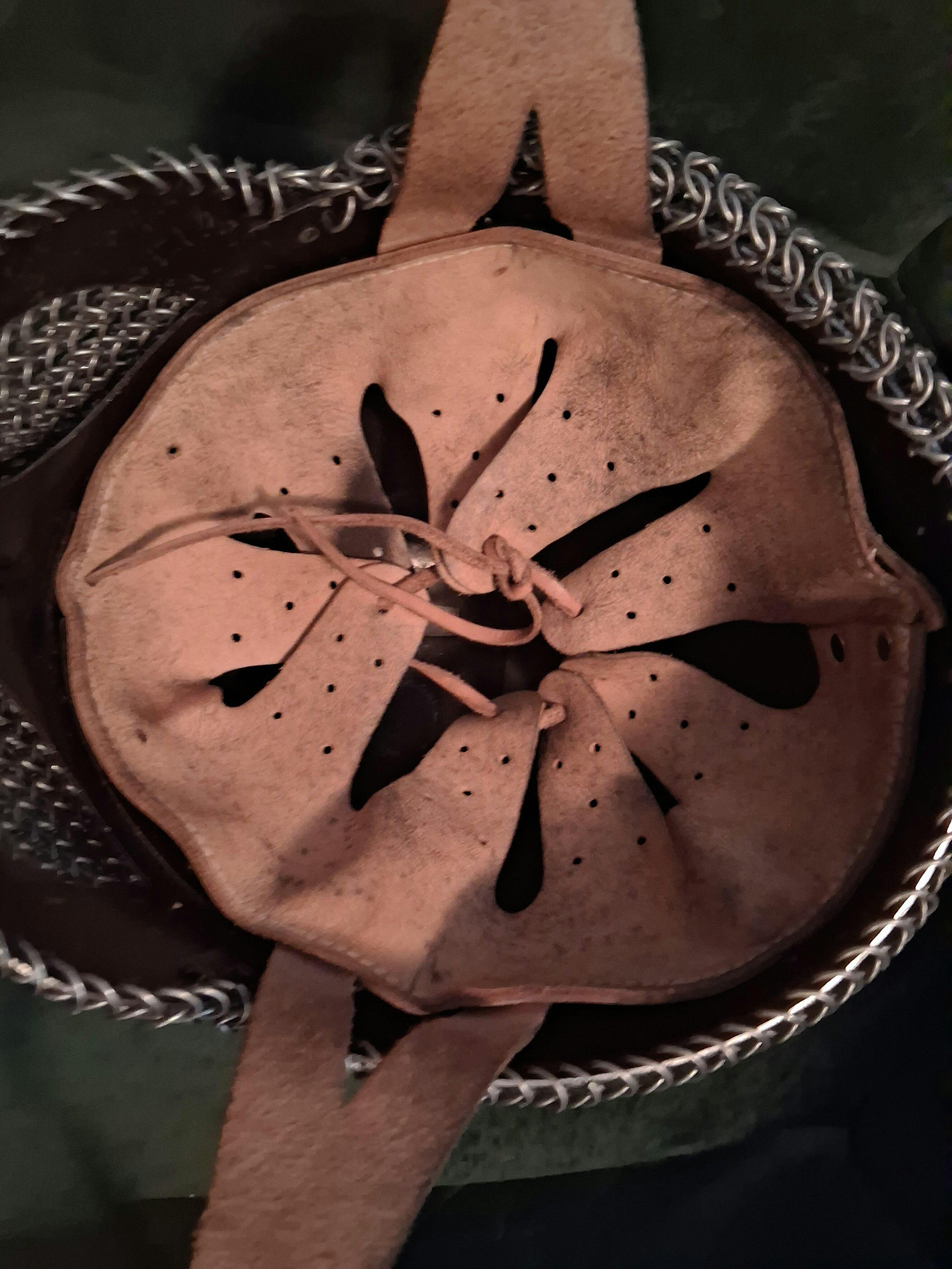 This helmet features a chainmail aventail that envelops your neck from both the front and back, providing comprehensive protection. This ensures ample shoulder coverage, making it the ideal choice for reenactments, LARP events, or Renaissance fairs.